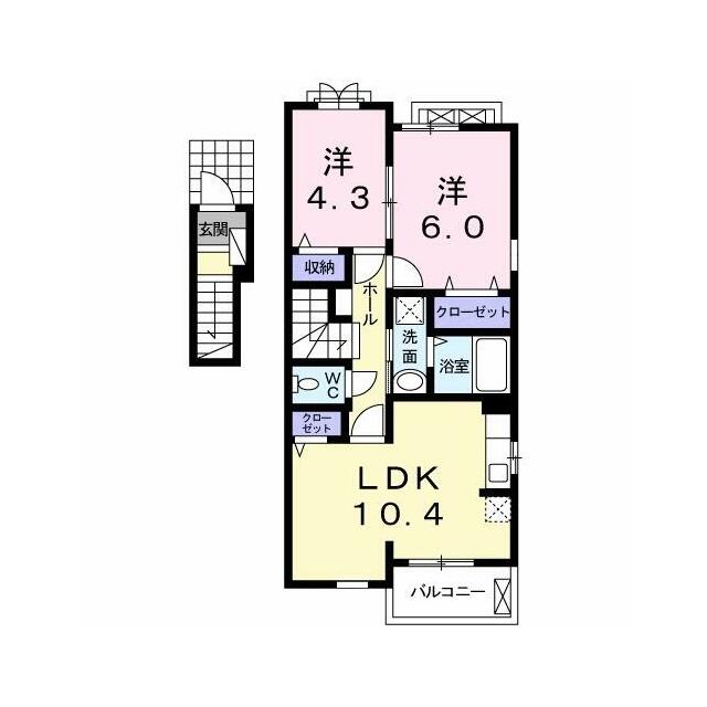 | 間取り | 2LDK(洋6・洋4.3・LDK10.4) | 主要採光面 | - |
